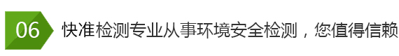 快準環(huán)境檢測公司技術(shù)力量雄厚,有一套完整的檢測服務(wù)流程,公司注重服務(wù)質(zhì)量, 公司嚴把質(zhì)量關(guān)向社會承諾:檢測公正、科學、高效、準確!空氣檢測、水質(zhì)檢 測、土壤固廢檢測、輻射放射檢測、噪聲振動檢測、環(huán)保認證檢測、裝修材料 檢測就找山東快準環(huán)境檢測技術(shù)有限公司!
